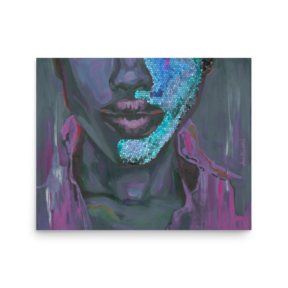 Be the first to review “Believer – Teal & Violet Black Woman Portrait Print”