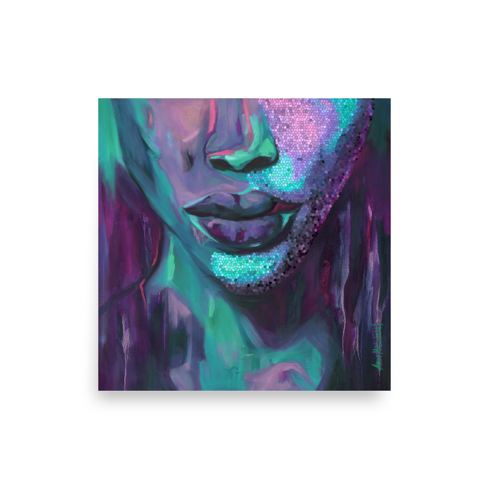 Empowered – Black Woman Portrait Print in Teal & Purple