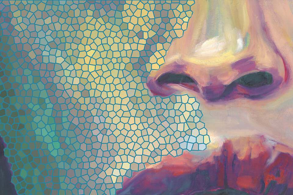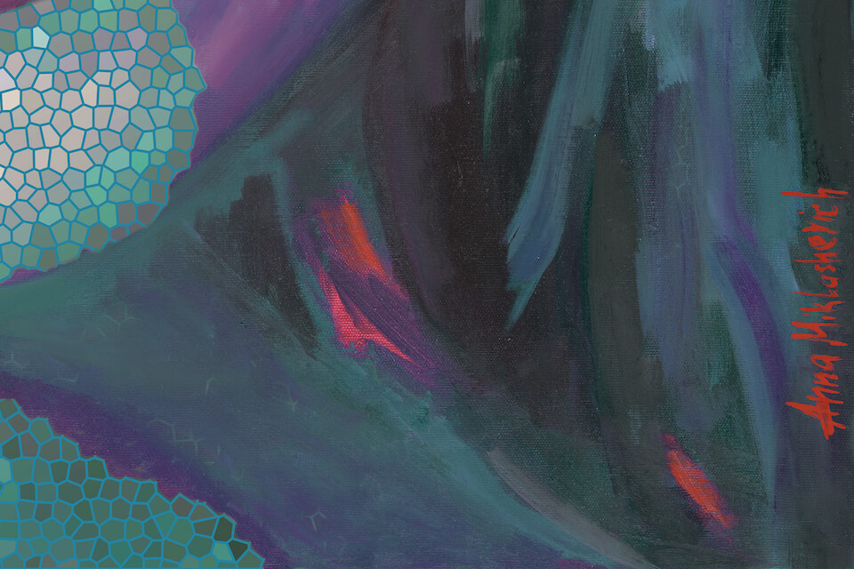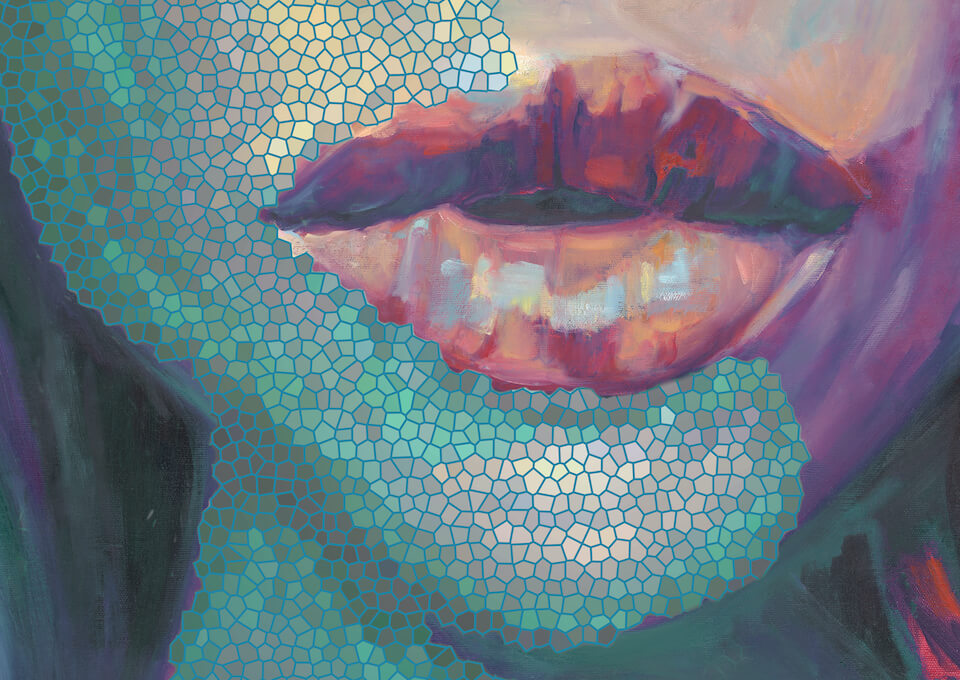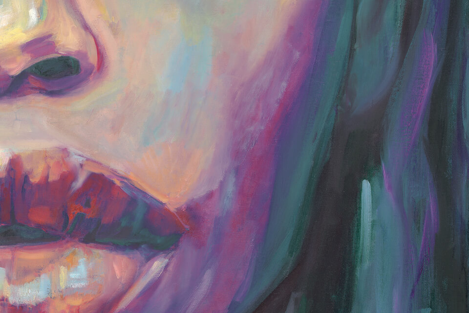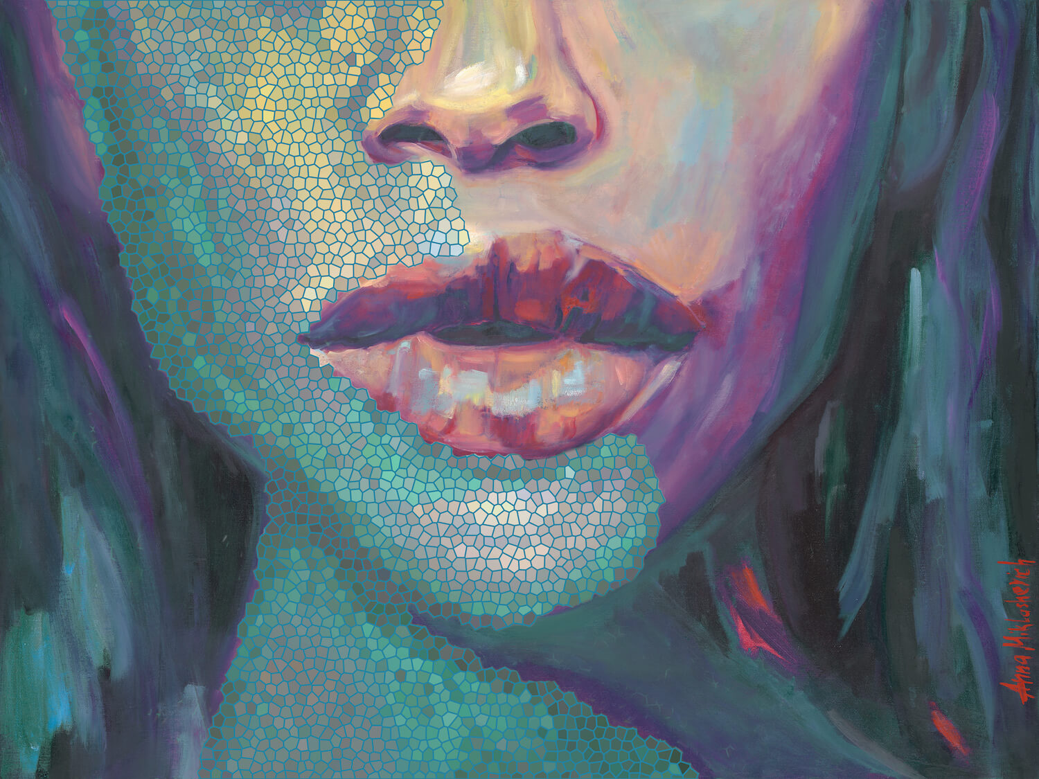 A luminous Black woman portrait glowing from within, rendered in vibrant purples, pinks, and soft blue tones.