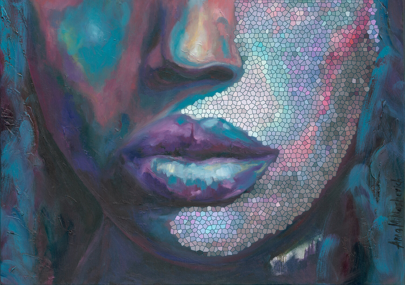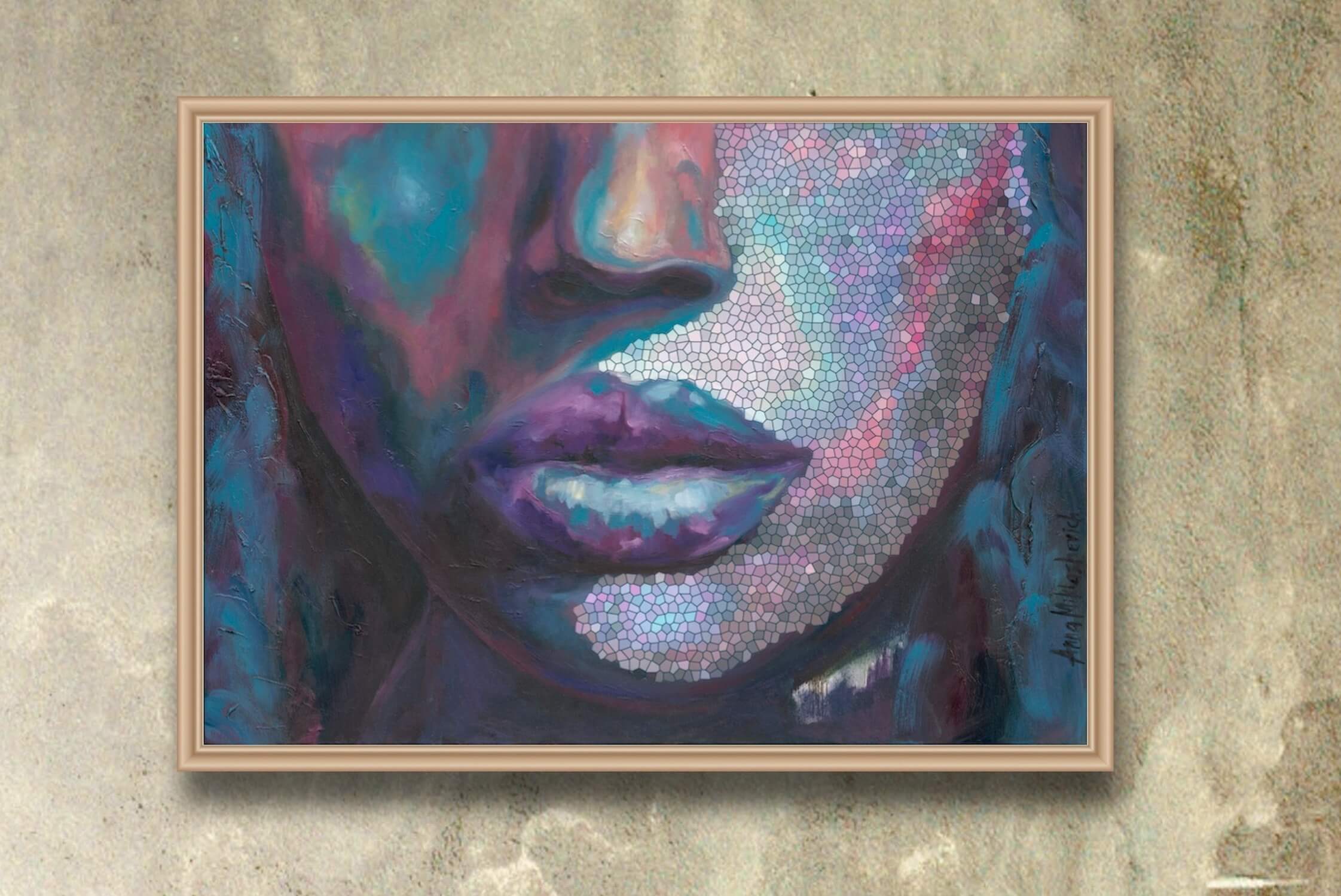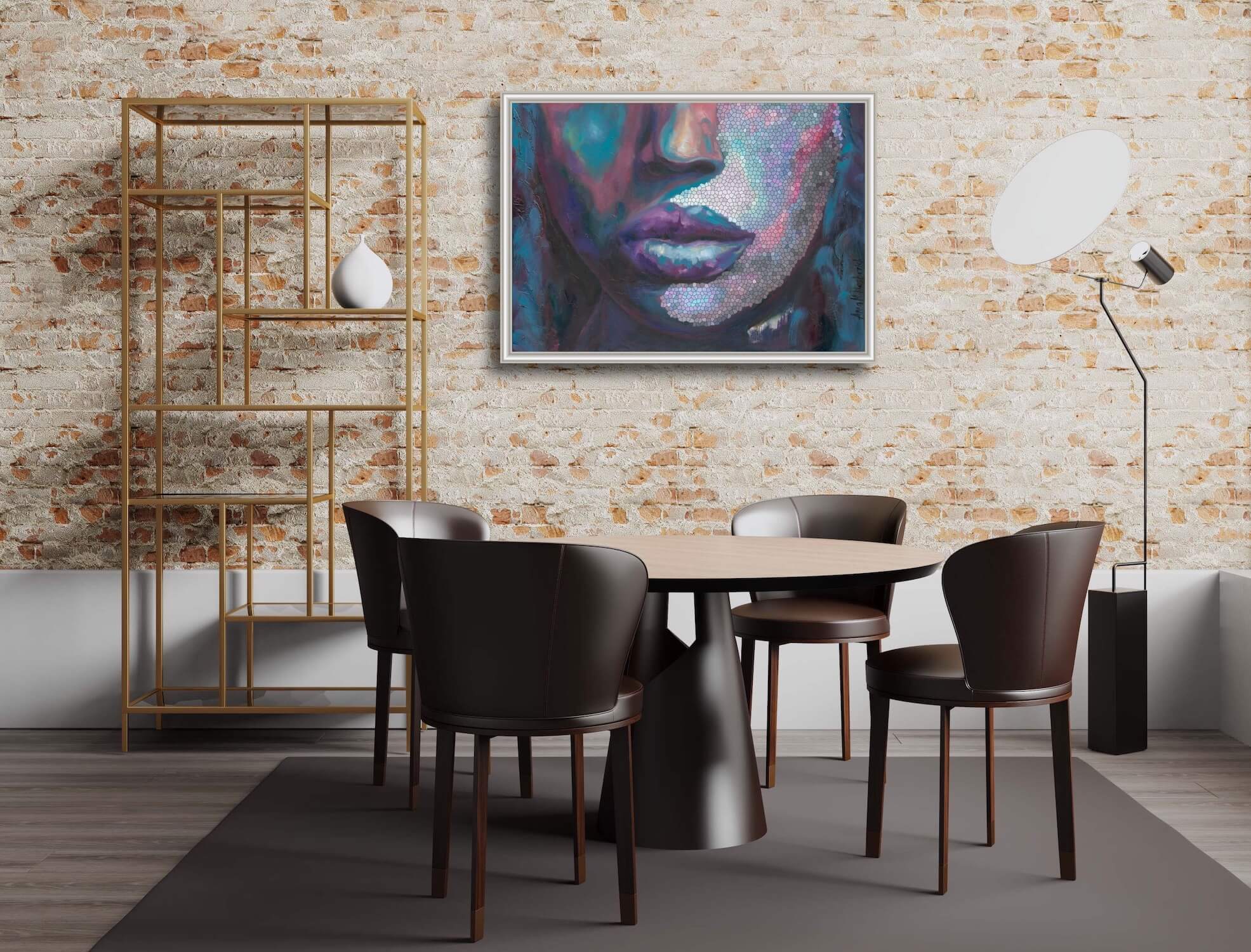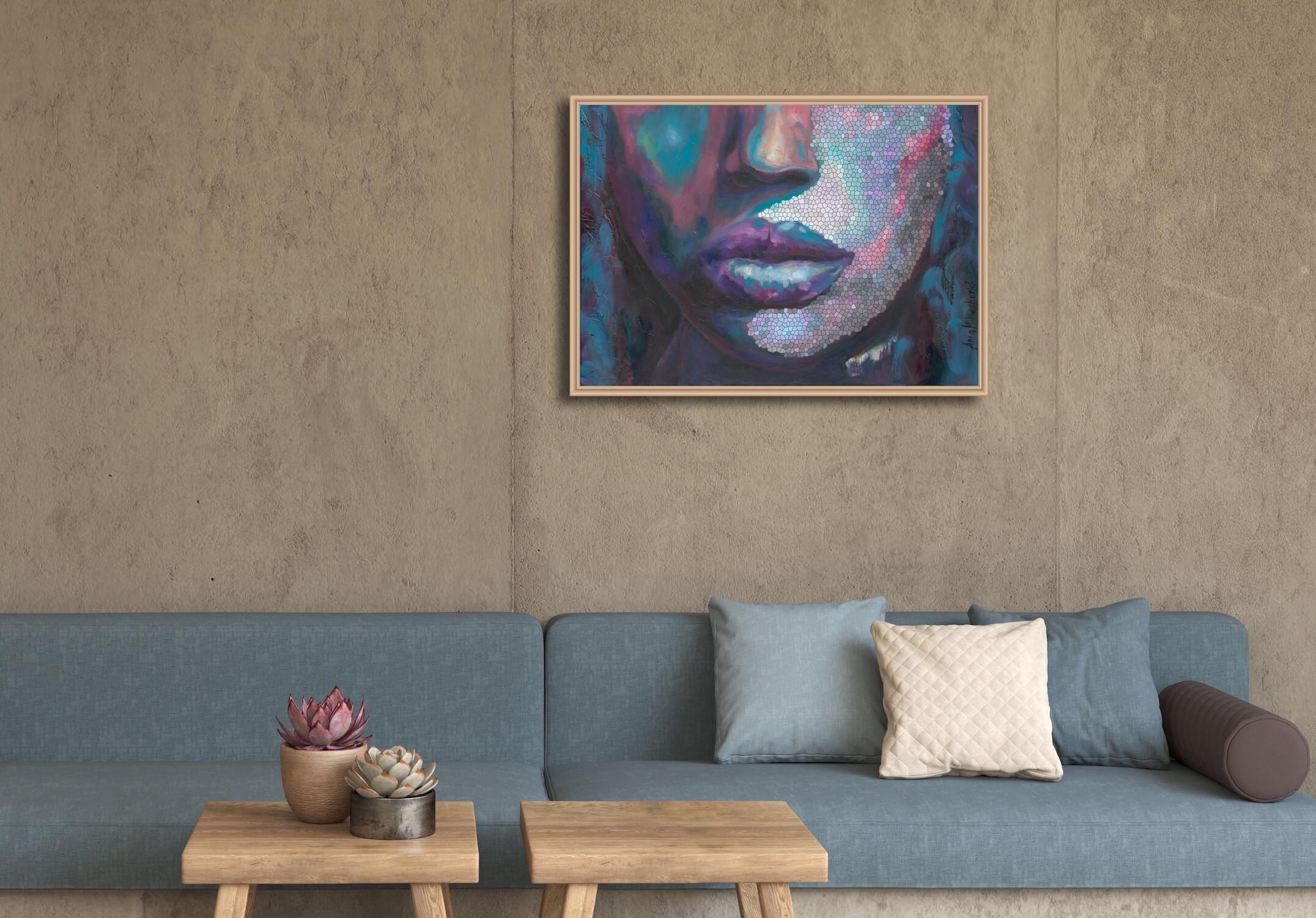 Cool teal and blue hues merge with silver luminosity, creating a sense of depth and flow. The light does not sit on the surface — it moves through her. Here, femininity is unconfined, grounded, and whole.